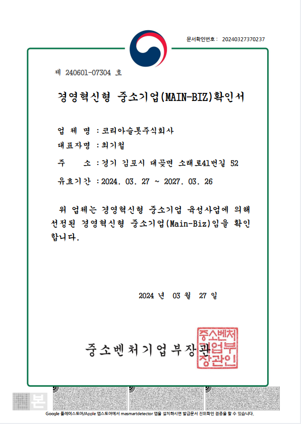 경영혁신형 중소기업 확인서 페이지 정보 작성자 최고관리자 댓글 0건 조회 44회 작성일 26-01-30 09:20 목록 본문 경영혁신형 중소기업 확인서 이전글평판스크린 특허증 26.01.30 다음글기술혁신형 중소기업 확인서 26.01.30